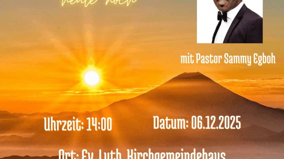 Was? – Heilungsgottesdienst mit Pastor Sammy Egboh Wann? – Samstag, den 6. Dezember 2025 um 14:00 Uhr Wo? – Ev.-Luth.Continue readingHeilungsgottesdienst in Radeberg am 06.12.2025