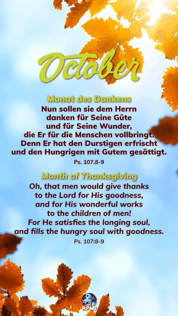 Dear all, our prayer week for the month of October has begun. Let us make this month one full of thanksgiving to our God. He deserves it. As always, we encourage you to pray and fast with us.